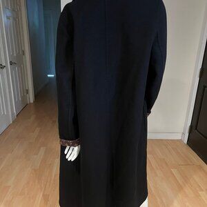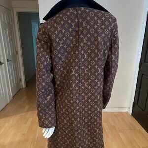 LOUIS VUITTON WOOL LV MONOGRAM TRIM LONG COAT SIZE 10