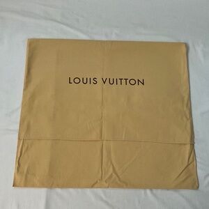 HUGE! Louis Vuitton extra large fold over dust bag in brushed cotton. Approximately 24.5” wide by 21.5” tall with flap folded over. Excellent pre-loved condition- no issues found other than light wrinkles/creases from being stored folded. Measurements in photos.