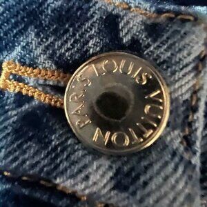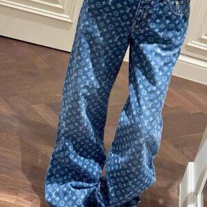 LOUIS VUITTON Jacquard Allover Zippered Long Jeans, Women's Blue