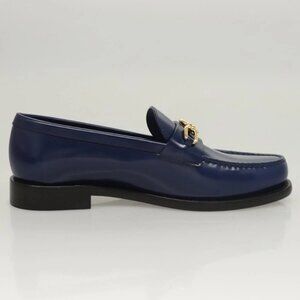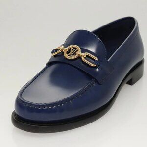 LOUIS VUITTON loafers shoes Patent leather Blue LV Auth