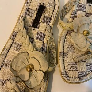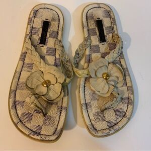 LOUIS VUITTON Azur Damier Flower Thames Thong Sandals Size 36 6
