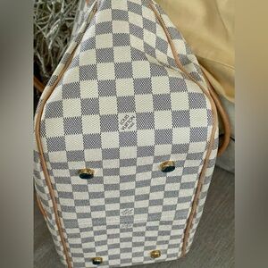 ✨Absolutely stunning Authentic Very RaRe LOUIS VUITTON Damier Azur FIGHERI GM Tote in this Condition⭐️Purchased personally by Me from the LOUIS VUITTON BOUTIQUE✨Gorgeous very clean & carried 1-2x max⭐️2012 .. (still has the blue sticker on feet and pocket hardware)✨Slight water marks thru-out & a slight mark here & there✨This bag is crafted in the Signature beautiful Damier Azur LV Coated Canvas with Gorgeous Vachetta leather trim and handle still sporting a clean Light patina. I will include the insert organizer that I purchased for the bag. Will come with LV Dust bag & box✨💯Authentic