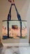 The canvas is clean and in beautiful condition. The leather piping around the base has some minor fading at the corners. The metal feet have surface scratches at the center. The handles show slight creasing with very light wear along the glazed edges. The hardware is crisp and bright with some very light hairline scratches. The interior is clean and in excellent condition throughout.
