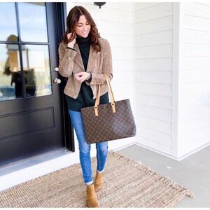 Add a spark to your Summer outfits with this uber-stylish Louis Vuitton Luco tote. Crafted using brown coated canvas leather, it features monogram LV logo all over, 2 top handles, brown leather trims, protective metal feet, zip closure, and a spacious inside with side zip and pocket. A stylish choice to house your wallet, phone, a bottle of water, sunscreen and a blanket for a refreshing picnic.