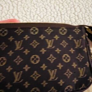 LOUIS VUITTON Monogram Mini Lin Pochette Bag w/ dust bag. LV Monogram Fabric