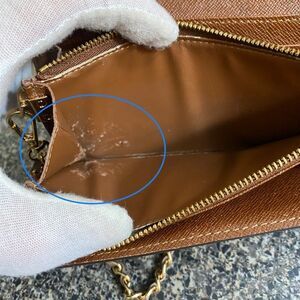 Interior pocket is fair-good (works okay), minor scratches and scuffs;