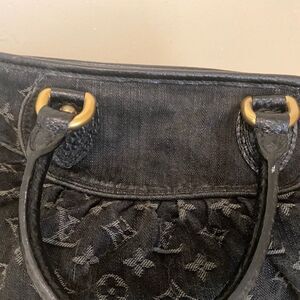 Auth LOUIS VUITTON Neo Cabby MM Black Denim Monogram Hand Shoulder Bag Excellent condition! Made in USA