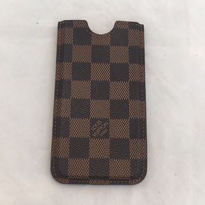 Authentic Louis Vuitton phone case in Damier pattern. Lovingly pre-owned with no wear to canvas, edges, interior or glazing. Will fit an iphone 4 or 5. Also can be used for credit cards, receipts. Excelellent condition. BC4164. France.