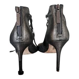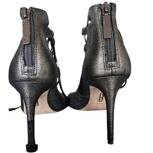 LOUISE ET CIE Caged Sandals Lo-Kacy Leather Silver Metallic Lace Up Zip 7.5 EUC