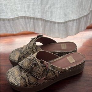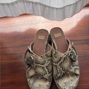 Elevate your style with these chic snakeskin slide sandals. Perfect for any casual outing, these sandals offer comfort and a trendy look. The neutral tones make them versatile for any wardrobe.