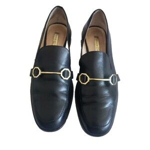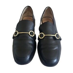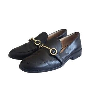LOUISE ET CIE Size 7.5M wide Bayne Loafers Black Leather Slip On Horse Bit