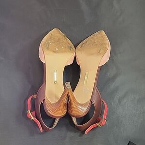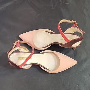 LOUISE ET CIE LOW ESPERANCE LEATHER SUEDE ANKLE STRAP HEELS SIZE 7M/37 MULTI-COLOR LIKE RED,BROWN AND PINK MADE WITH LEATHER UPPER MAN MADE MATERIALS HEEL HEIGHT MEASUREMENTS APPROX 3.1/2"INCHES THIS ITEMS IS PRE-OWNED EXCELLENT CONDITION WITH ONLY LIGHT SIGNS OF WEAR IF ANY CHECK THE PICTURES
