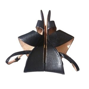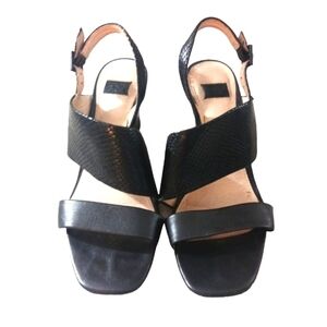 LOUISE Et CIE Quarza Black Wedge Sandal Snakeskin Embossed Heeled Sandal