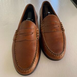 LOUIS ROTH Men’s Brown Thick Leather Penny Loafers Size 10.5 US in excellent used condition. No rips or tears just showing minor discoloration normal with genuine leathers.Bench made in USA.