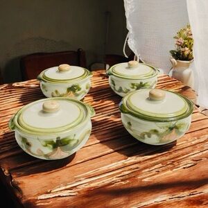 LOUISVILLE Stoneware, Kentucky Pear individual casserole dishes with lids.
