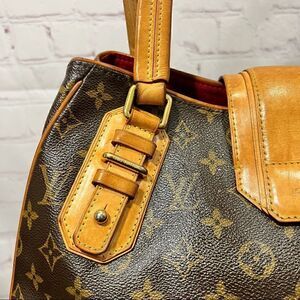 “This is an authentic LOUIS VUITTON Monogram Griet. This shoulder bag is crafted of classic Louis Vuitton monogram coated canvas. The bag features natural vachetta cowhide leather trim, piping, shoulder straps, and a thick crossover strap with a polished brass press lock. This opens to a partitioned raspberry red microfiber interior with zipper and patch pockets. This is a perfect everyday bag, from Louis Vuitton!”