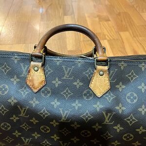 Made from classic Monogram canvas, the Speedy 40 is a stylish, roomy bag designed for both travel and daily use. Launched in 1930 as the "Express" and affected by that era's rapid transit, today’s updated Speedy remains a timeless House icon, with its unmistakable silhouette, rolled leather handles…”