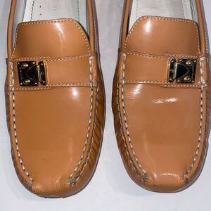 LV PATENT ROSE SZ WOMEN'S SUHALI LOMBOK DRIVING MOCCASIN. GOLD HARDWARE,