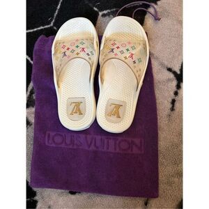LOUIS VUITTON Vintage Lv Logo Monogram Beach Sandals multicolor Rubber slides sz