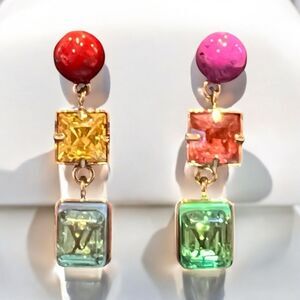 Want something flashy yet fun? These sparkling earrings from Louis Vuitton feature multicolor crystals with LV monogram logos subtly set in each one. These are truly a statement piece and an amazing collectible from Louis Vuitton.