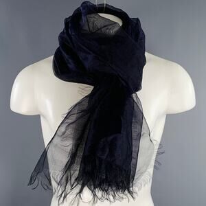 LOULOU de LA FALAISE scarf in an indigo blue silk featuring raw edges.