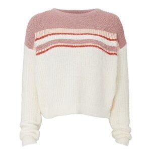 LOUNA Sweater Fuzzy Eyelash Ribbed Knit Colorblock Striped Crew Neck Pullover L