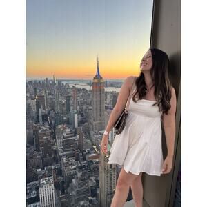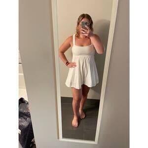 LOUNA White Tie Back Square Neck Romper in size Medium is a stylish and effortless piece perfect for warm weather or casual events. The square neckline offers a clean, modern look, while the tie-back detail adds a playful, feminine touch and allows for a customizable fit. Made from a lightweight fabric, the romper combines comfort with a sleek, structured appearance. Its minimalist design makes it versatile for various occasions, from daytime outings to summer get-togethers, and can easily be dressed up with accessories or kept simple for a laid-back, chic vibe.
