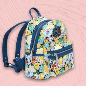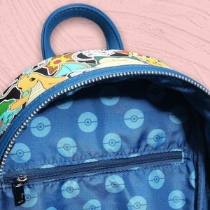 Carry around your potions, Poké Balls, and other Pokémon needs in this Loungefly mini backpack made to match your trainer style! Featuring a sticker-like allover print design of Pikachu, Snorlax, Squirtle, Bulbasaur, and other fan-favorite Pokémon from the beloved series, you'll look Elite Four ready whenever you don this stylish bag. Also features an enamel brand badge, silver-toned hardware, adjustable shoulder straps, and a Poké Ball interior lining pattern.
