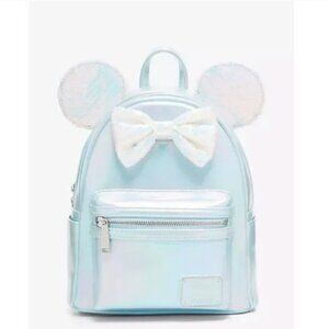 LOUNGEFLY light blue Disney Minnie Mouse Iridescent Sequin Ears Mini Backpack