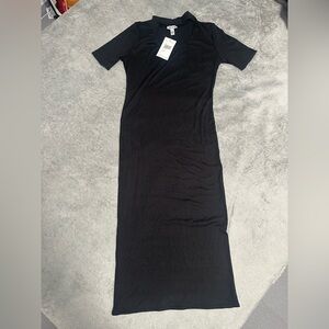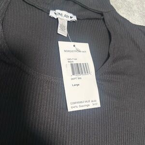 LOVE ADY Ribbed Knit, Neck Cutout, Black Midi Dress Size Large NWT