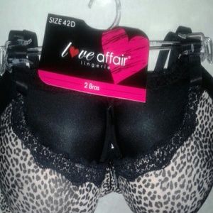 LOVE AFFAIR BRAS 2 PIECES BLACK & LEOPARD PRINT