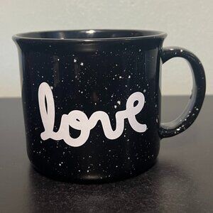 LOVE Black and White Speckled Stoneware Camping Campfire Style Mug ~ Heavy Duty