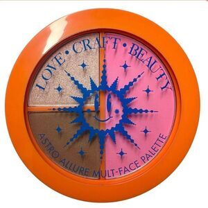 LOVE + CRAFT + BEAUTY makes this Astro Allure Multi-Face Palette in Light/Medium. It's a full size at .26 ounces. This is a highlighter, bronzer and blush in one palette - designed to provide a sun-kissed glow and radiant look. This one compact contains a pink champagne highlighter, a warm bronzer and a hot bubblegum pink blush. Everything you need to put wow in your look. Swipe the bronzer along the cheekbone, hairline and jawbone and blend the blush across the apples of your cheeks. Add the highlighter to your cheekbones, the bridge of your nose and the inner corners of your eyes. This is vegan, cruelty free and NWT!