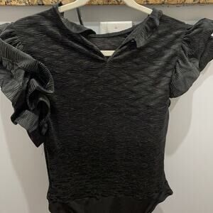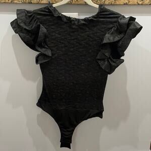 LOVE CULTURE TOP CHIC Black Ruffled Bodysuit NWT
