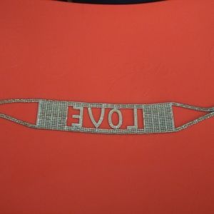 Bought this LOVE chocker & loved it until a rhinestone fell out. See numerous pictures of flaw where the rhinestone fell out. The rhinestone that fell out is in the back, so if you have long hair to cover it up....you won't even see the MISSING rhinestone. (Product flaw described accurately through pictures).