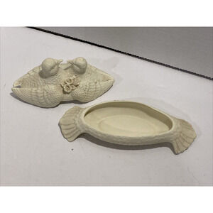 This lovely white porcelain trinket box is perfect for storing your cherished knick knacks or jewelry. Featuring a charming design of love birds, this box is a great addition to any collection. Made of porcelain. Whether you're a collector or just looking for a unique storage solution, this trinket box is sure to delight.