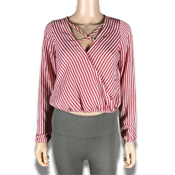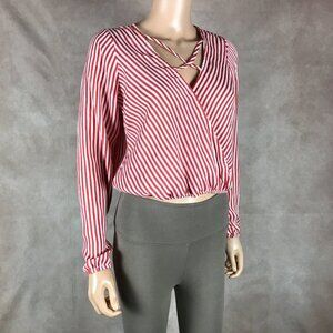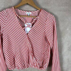 LOVE FIRE Long Sleeve Criss Cross Front Striped Crop op
