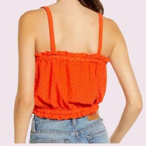 LOVE FIRE Tank Top Size Medium 8 - 10 Women's Orange Eyelet Sleeveless Crop Top