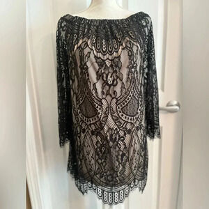 LOVE FIRE Women's Dress Black Lace Off the Shoulder Fancy Mini Dress