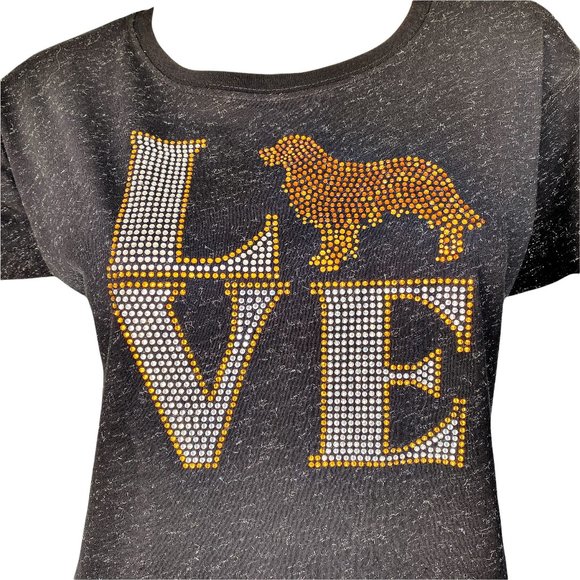 LOVE Golden Retriever Rhinestone and Glitter Tee Shirt