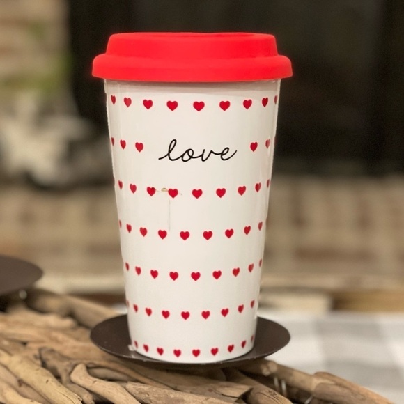 “LOVE” & Hearts Ceramic Double Wall Insulated Travel Mug
