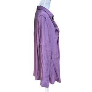 LOVE IS ALL Lagenlook Purple Button Front Pleated Tunic Blouse M