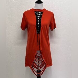 LOVE J - Juniors Lace Up & Cut Out Top - L