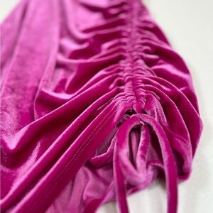 love j, spaghetti strap, cinched, ruched, velour, mini dresses, women's dresses, bodycon, party, festive, concert, going out, fall, eras tour, taylor swift, Barbie, Barbiecore, glam, glamorous, festival, disco