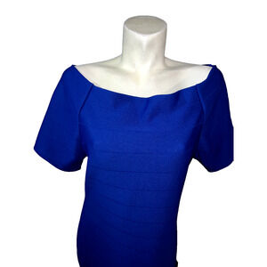 LOVE J Plus Size 1X Royal Blue Off Shoulder Rear Zip Ribbed Bodycon Dress Party