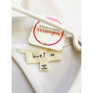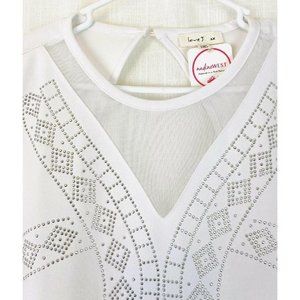 LOVE J Women’s 1X Dress White Retro Gogo Tunic SilveStudded Keyhole TA18176X NWT.