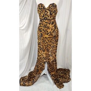 LOVE & LEMONADE Deep V Neck Cross Leopard Print Slim Long Dress size medium nwt