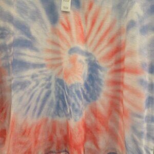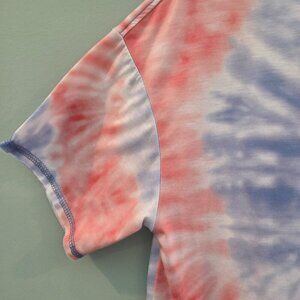 LOVE, LIFE, LIVE CROP T-SHIRT WITH DROP SLEEVE SIZE LARGE BLUE & PINK TIE DYE
