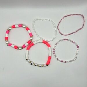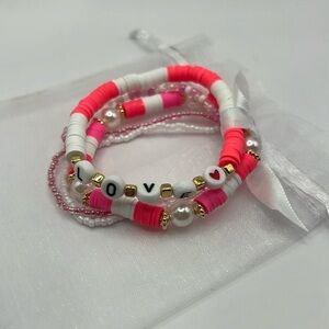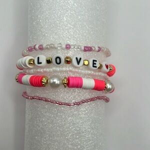 LOVE Letter Pink and Faux Pearl Valentine’s Bracelet Stack