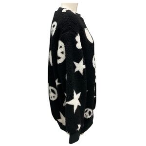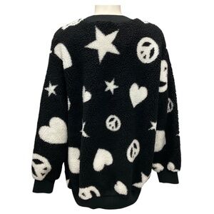 LOVE MOSCHINO BLACK / WHITE HEART STAR PEACE FAUX SHERPA SWEATER